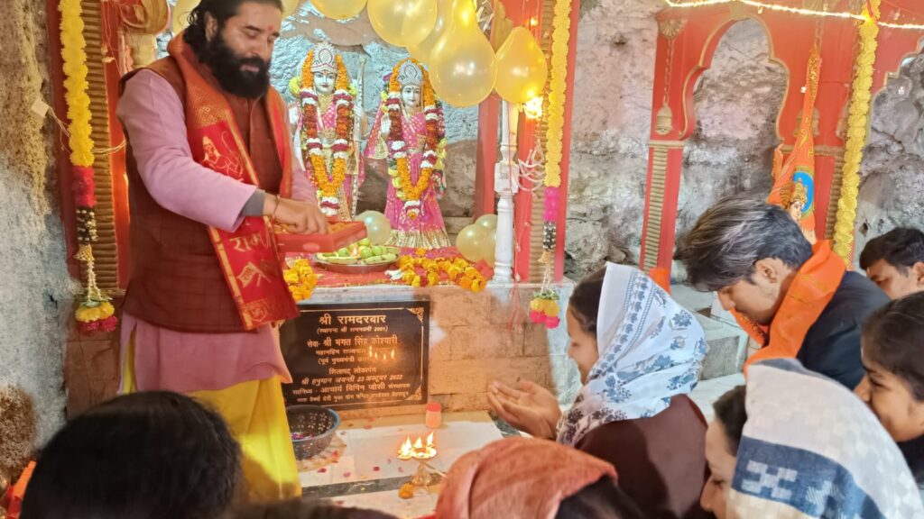 देहरादून: श्री राम दरबार माता वैष्णो देवी गुफा योग मंदिर टपकेश्वर महादेव देहरादून में आज मर्यादा पुरूषोतम भगवान श्री राम लला के अयोध्या धाम में स्थापित मंदिर की वर्षगांठ को श्रद्धालुओं द्वारा हर्षोल्लास और धूमधाम के साथ मनाया गया