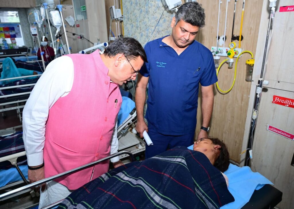 हरिद्वार: मुख्यमंत्री पुष्कर सिंह धामी ने रविवार को हरिद्वार जिला चिकित्सालय में मनसा देवी पैदल मार्ग पर हुई भगदड़ में घायल हुए लोगों का हालचाल जाना, सीएम धामी से इस दौरान मनसा देवी ट्रस्ट के पदाधिकारियों ने वार्ता की। मनसा देवी ट्रस्ट के अध्यक्ष श्रीमहंत रविन्द्र पूरी ने कहा कि इस दुःखद घटना में मृतकों के परिजनों के 5-5 लाख तथा घायलों को 1-1 लाख मनसा देवी ट्रस्ट द्वारा प्रदान किए जाएँगे। मृतक के परिजनों और घायलों को उनके घर तक ले जाने के लिए ट्रस्ट द्वारा वाहन की व्यवस्था भी की जाएगी।