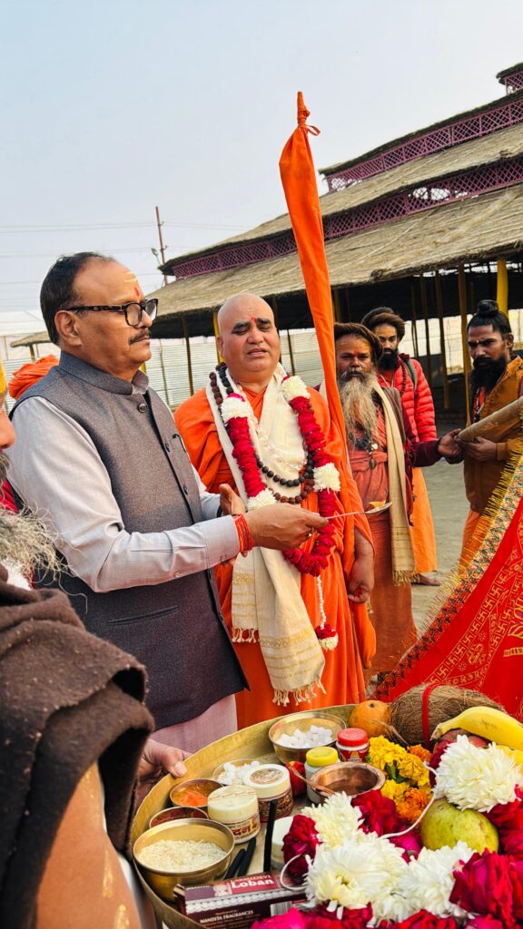 महाकुंभ मेला शिविर में शंकराचार्य अधोक्षजानंद देवतीर्थ ने किया ध्वजारोहण, डिप्टी सीएम बृजेश पाठक रहे मौजूद…