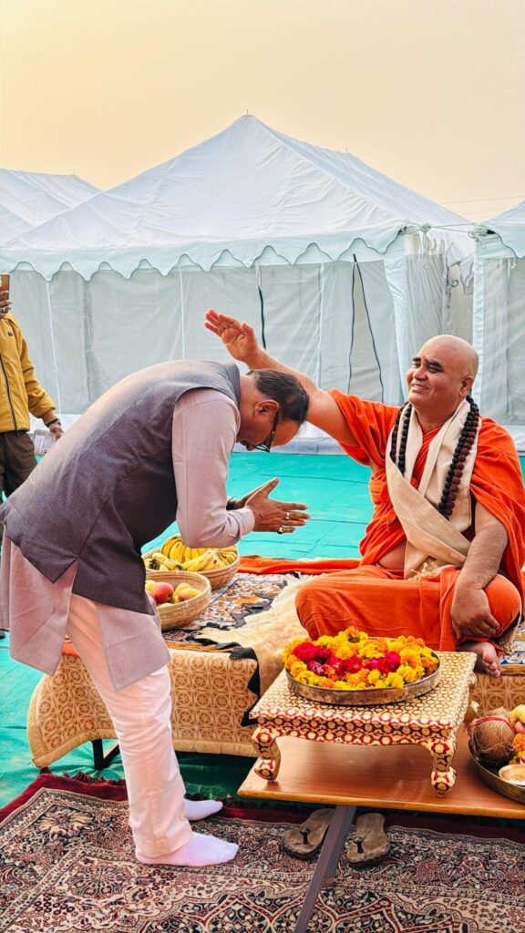 प्रयागराज: लोक आस्था के महापर्व के भव्य, दिव्य कुंभमेला शिविर में गोवर्धन मठ पुरी पीठाधीश्वर शंकराचार्य अधोक्षजानंद देवतीर्थ के द्वारा ध्वजारोहण किया गया। शंकराचार्य स्वामीअधोक्षजानंद देवतीर्थ महाराज के सानिध्य में उपमुख्यमंत्री बृजेश पाठक व संत विद्वानों की उपस्थित में वेद मंत्रोच्चार के साथ पंचोपचार पूजन किया। इस दौरान उप मुख्यमंत्री बृजेश पाठक ने शिविर में बन रही विशाल यज्ञशाला एवं शिविर के तैयारियों का अवलोकन कर जगद्गुरु शंकराचार्य से कुंभमेला के संबंध में कई महत्वपूर्ण विषयों पर चर्चा की।